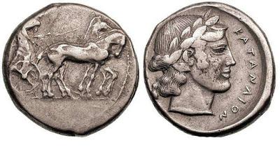 Όπως περιγράφει ο ιστορικός Θουκυδίδης, η ίδρυση της πόλης της Κατάνης (σήμερα Catania) χρονολογείται το 729 π.Χ., από Χαλκιδείς υπό τον Εύαρχο ,που κατευθύνθηκαν εκεί από την Νάξο της Σικελίας. Οι Χαλκιδείς κατέλαβαν λέγεται δια της βίας έναν οικισμό των Σικούλων με το όνομα Κατάνε και εκεί ίδρυσαν την πόλη. Χτισμένη κοντά στη θάλασσα ,στους πρόποδες της Αίτνας, ήταν αποικία αγροτική και συγχρόνως εμπορική. Αυτό της εξασφάλιζε μεγάλη οικονομική ευημερία, αλλά ταυτόχρονα εξάπτει τον πόθο της γειτονικής και πανίσχυρης πόλης των Συρακουσών να την κατακτήσουν.