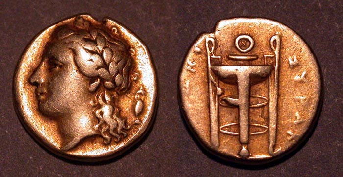 LUNIA. METAPONTUM ( METAPONTION ). 280-279 π.χ. Χρυσό Τετρόβολο |