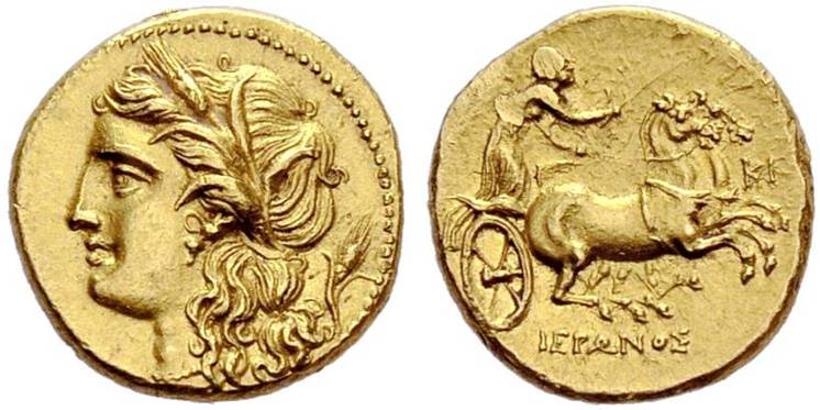 Ιέρων Β΄ 275-215 π.Χ. Συρακούσες Χρυσό δεκάδραχμο |